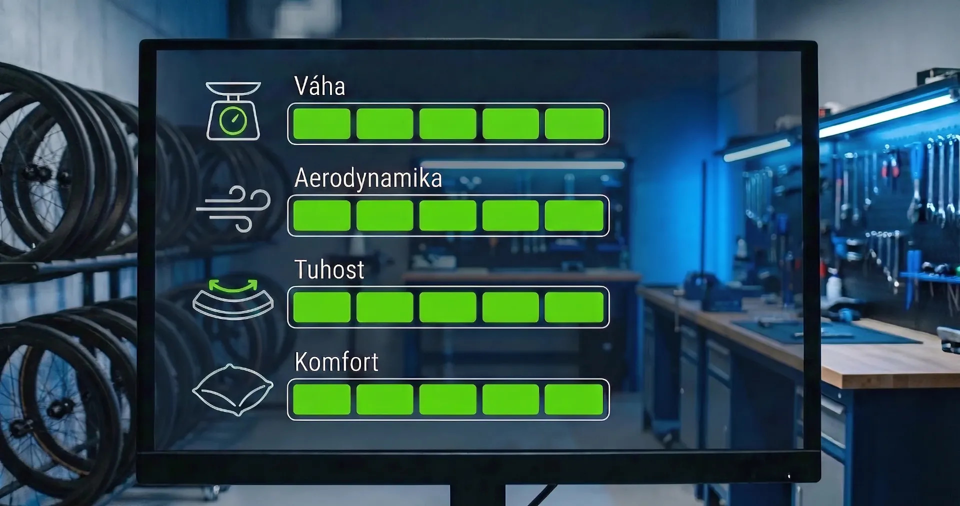 ▪️Váha: Hmotnost 1295 g patří k naprosté špičce. Minimální rotující hmota zaručuje bleskovou akceleraci a pocitovou lehkost v každém strmém výjezdu.